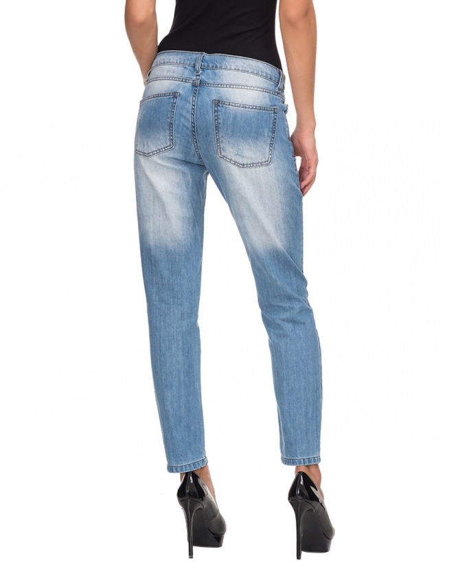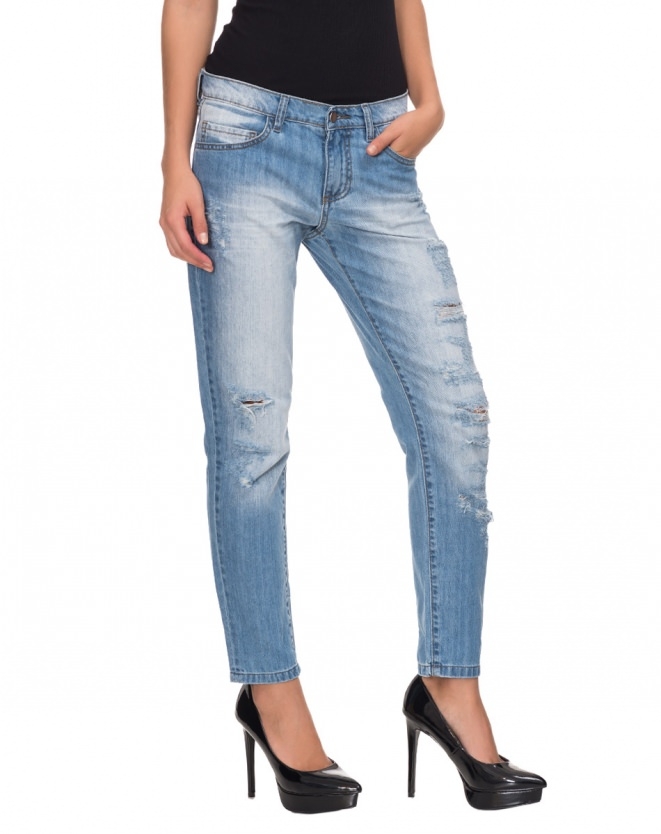 O estilo destroyed garante personalidade e um visual mais despojado. Calça Jeans com lavagem clara e rasgos no comprimento. Fechamento em zíper e botão. Com passantes.100% Algodão.