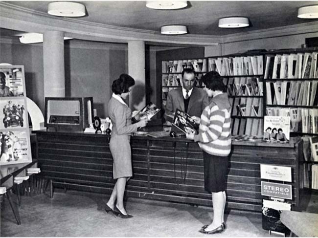 Mulheres em uma loja de discos em Cabul, antes da chegada do regime talibã no Afeganistão, 1950