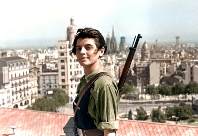 Marina Ginestà, jornalista, intérprete e militante francesa. Nesta foto ela tem 17 anos, e está em Barcelona durante a Guerra Civil Espanhola, 1936