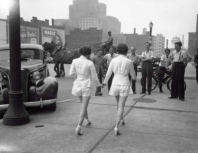Duas mulheres em Toronto, Canadá, pela 1ª vez não tampam as pernas. 1937